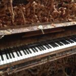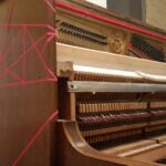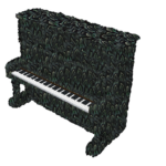 SICHTBAR? UNSICHTBAR?LEISE? LAUT? Das Klavier „tarnt“ sich und verschmilzt mit seiner Umgebung. Einzig das dreidimensionale Raumgitter – durch Signalfarbe hervorgehoben – sticht ins Auge und deutet schwerelos das Schema und damit die Idee eines Klaviers an. Erst durch das Spiel, den Klang und die Musik entsteht eine greifbare Präsenz des Instruments. Zustand: Klavier mit Geschichte, aber wieder stimmbar.
