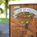 Seit über drei Jahren machen die Rausfrauen den öffentlichen Raum unsicher, bestücken und beglücken ihn mit handwerklichen Erzeugnissen, die normalerweise schön versteckt im Privaten bleiben. Natürlich wird es stilecht mit rausfräulichen Produkten garniert – wir pflanzen darauf eine bunte Häkelblumenwiese und besticken es im Kreuzstich. Zustand: Klavier mit Geschichte, aber wieder stimmbar.